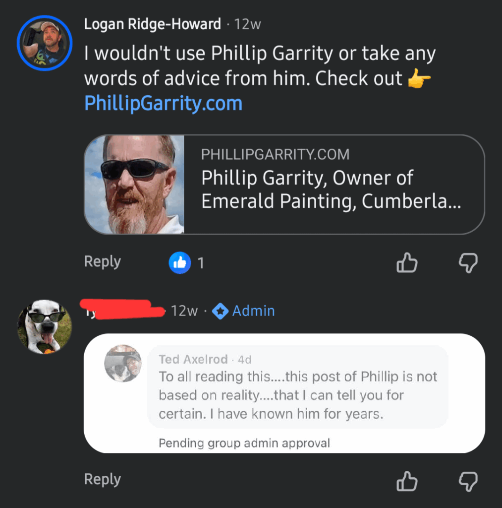 Ted Axelrod is a defender of Phillip’s when this website is posted on the community pages. If Ted Axelrod supports the conduct of Phillip Garrity, would you trust Ted Axelrod around your home or family, doing a project for you??